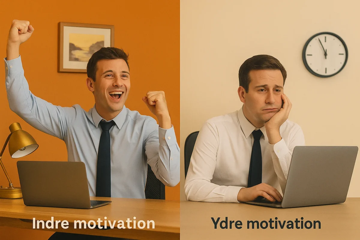 Lad os lige tage fat i to af de vigtigste brikker i motivationspuslespillet: indre og ydre motivation. Forestil dig to medarbejdere – den ene sprudler af energi, klar til at gå den ekstra mil bare for at løse en udfordring. Den anden? Han holder mest øje med, hvornår klokken slår fem. Hvad er forskellen? Den ene drives af indre motivation, den anden af ydre.
